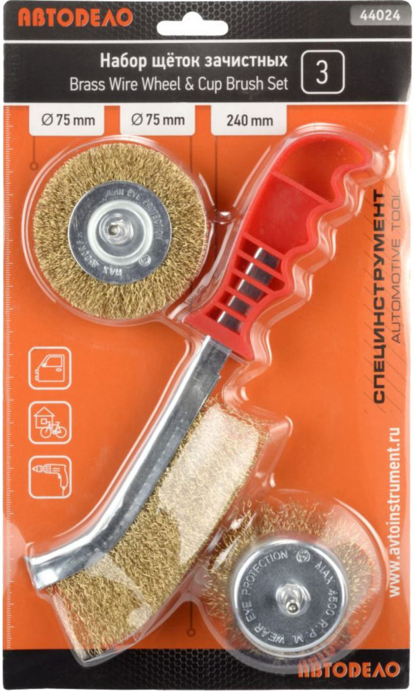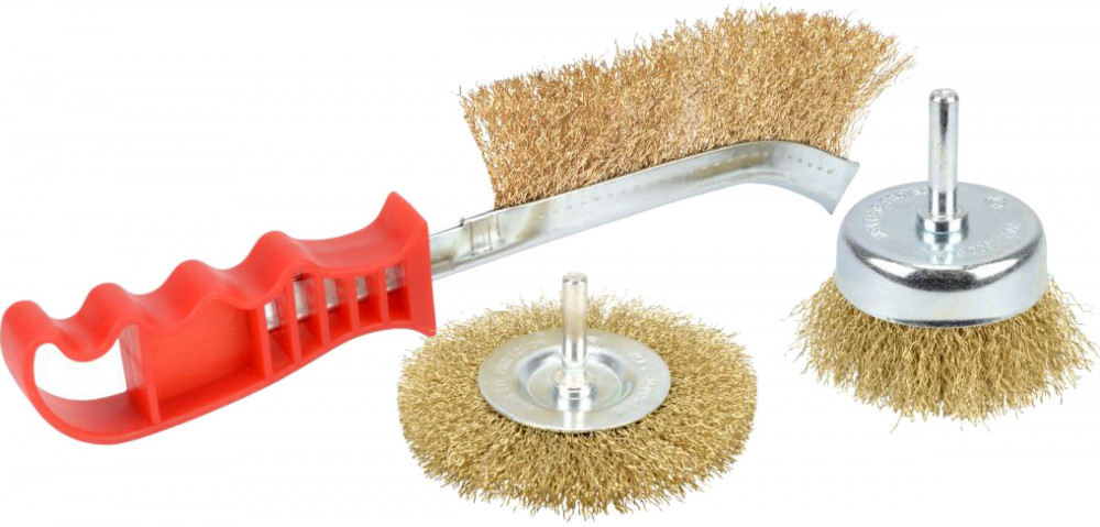 АвтоДело Набор щеток зачистных для дрелиВ данный момент этот товар отсутствует в продаже. Возможно, у нас найдется аналогичный или похожий товар здесь. Набор предназначен для очистки поверхностей узлов и агрегатов, элементов крепежа, деталей механизмов и кузовов автомобилей от старой краски, загрязнений и коррозии. Ворс щёток стальной с латунным покрытием. Щётки снабжены хвостовиком диаметром 6 мм для установки в патрон электрической дрели. Набор укомплектован торцевой чашечной щёткой диаметром 75 мм, плоской щёткой диаметром 75 мм, а также ручной щёткой длиной 240 мм с пластиковой рукояткой. Набор поставляется в индивидуальной блистерной упаковке. |
