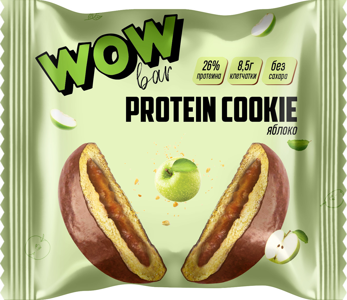 белковая смесь (концентрат сывороточного белка, концентрат молочного белка, казеинат кальция), пищевые волокна изомальтоолигосахариды, глазурь шоколадная (растительные масла, пищевое волокно полидекстроза, концентрат молочного белка, концентрат сывороточного белка, сыворотка сухая деминерализованная, молоко сухое, какао-порошок, эмульгатор лецитин соевый, подсластитель сукралоза, ароматизатор), начинка «яблоко» (пищевое волокно полидекстроза, подсластитель сироп мальтитный, вода, пюре яблока, подсластитель эритрит, загуститель пектин, регулятор кислотности лимонная кислота, ароматизатор, консервант сорбат калия), подсластитель сироп мальтитный, кокосовое масло, яйцо, вода, подсластитель эритрит, влагоудерживающие агенты (глицерин, сорбитол), эмульгатор соевый лецитин, ароматизатор, цитрусовые волокна, разрыхлители (сода пищевая, пирофосфат натрия), соль, консервант - сорбат калия.