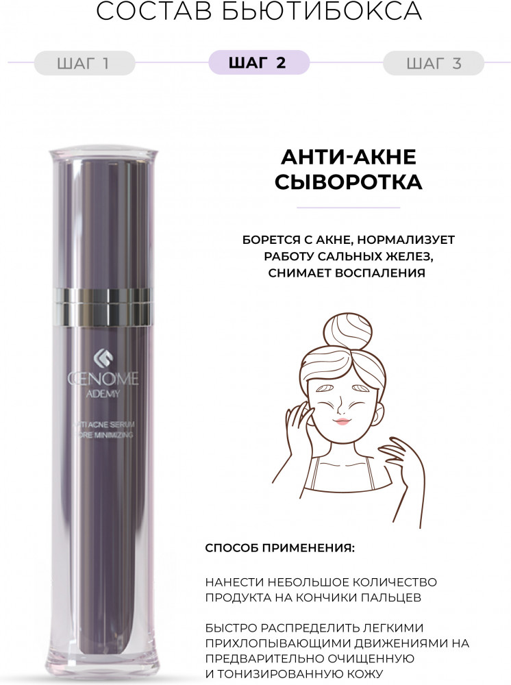 Анти акне сыворотка: aqua, butylene glycol, glycerin, trehalose, sodium hyaluronate, oligopeptide-1, tetraselmis suecica extract, portulaca oleracea extract, lonicera japonica (honeysuckle) flower extract, centella asiatica extract, sophora angustifolia root extract, glycyrrhiza uralensis extract, salix alba (willow) bark extract,phellodendron amurense extract , anastatica hierochuntica extract, niacinamide, allantoin, phenoxyethanol, carbomer, arginine.