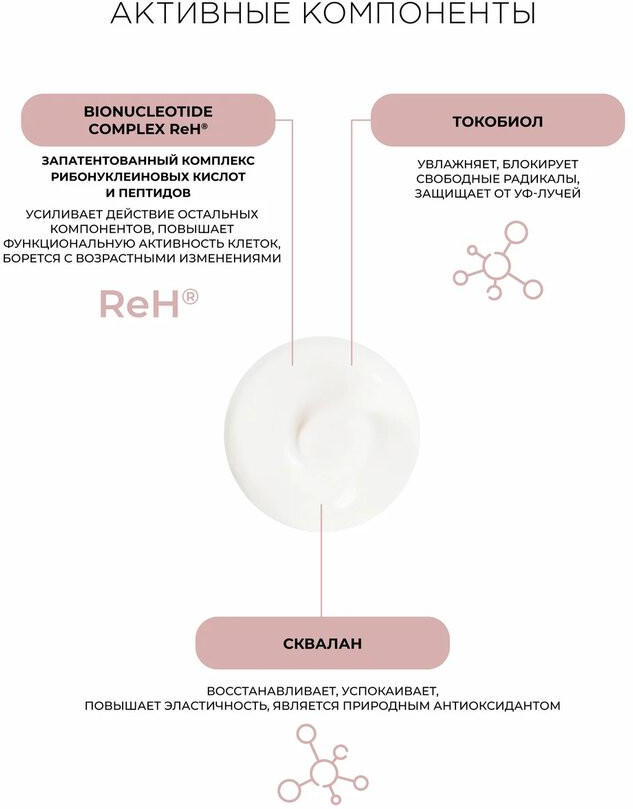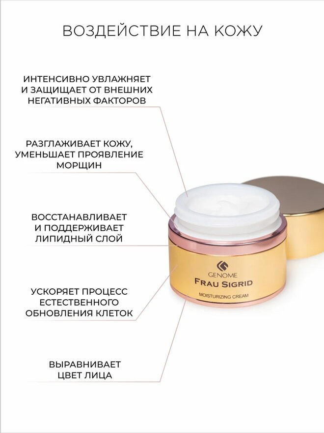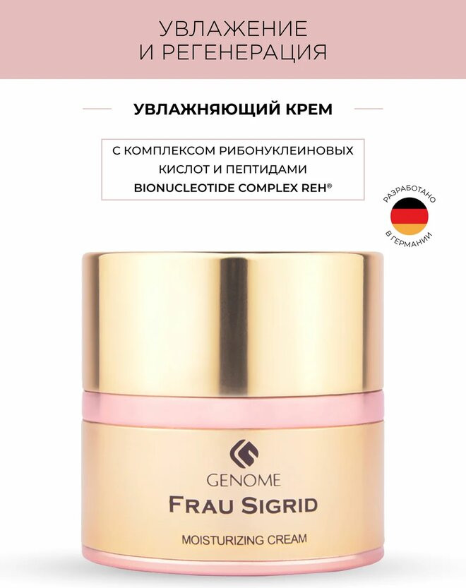 💳 Оплатить за товар можно при получении 🇰🇿 Есть бесплатная доставка по Казахстану 🎁 Копите бонусы с каждой покупки Серия: Frau Sigrid Увлажняющий крем премиальной линии Frau Sigrid обладает двойным действием: обеспечивает кожу лица влагой, поддерживая ее внутреннюю среду на оптимальном pH уровне, и дополнительно оказывает регенерирующее действие. Bionucleotide Complex ReH® - комплекс рибонуклеиновых кислот и пептидов в сочетании с высокоэффективными ингредиентами на растительной основе улучшает функциональную активность клеток и стимулирует естественную регенерацию клеток кожи, ускоряя ее обновление. Гиалуроновая кислота и сквалан обеспечивают мощное увлажнение. Масла ши (витамины А и Е) и жожоба улучшают микроциркуляцию крови и способствуют обновлению клеток кожи лица. Сбалансированная формула ингредиентов придает эластичность, содействует укреплению структуры кожи лица и великолепно разглаживает морщины. Для нормальной и сухой кожи. Рекомендуется наносить после антивозрастной сыворотки Frau Sigrid ежедневно. |