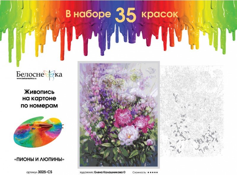 Белоснежка Картина по номерам «Пионы и люпины»-25% сюжет качество кистей качество красок рисунок