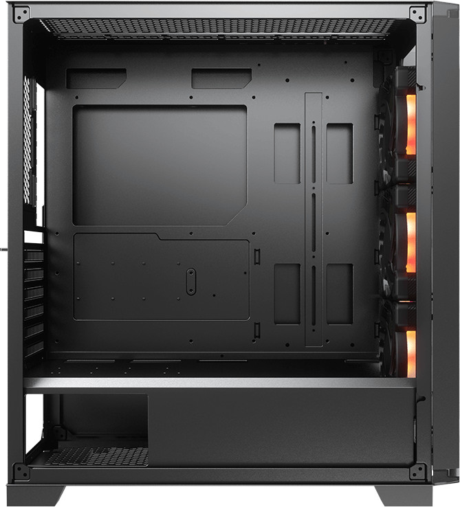 Массивная левая панель из закаленного стекла представляет собой аккуратную конструкцию, поэтому вы можете легко создать систему профессионального уровня. Кроме того, Cougar использует металлические рамы вместо сверления закаленного стекла с 4 отверстиями в углах, что помогает повысить долговечность.