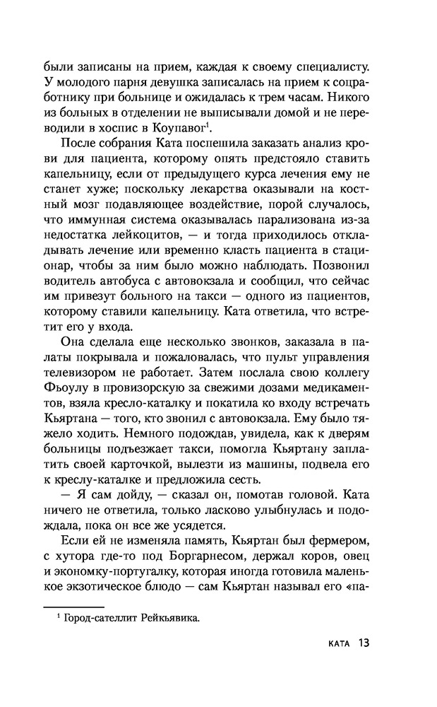 КатаВ данный момент этот товар отсутствует в продаже. Возможно, у нас найдется аналогичный или похожий товар здесь. Серия: Крафтовый детектив из Скандинавии. Только звезды Ката — медсестра из онкологического отделения рейкьявикской больницы, и за свою жизнь видела немало боли и страданий. Но они были чужими, не ее... Что такое настоящие страдания, она поняла, когда бесследно исчезла ее дочь, а потом, год спустя, обнаружили тело девушки. Личности вероятных насильников и убийц — а их было трое — определили довольно быстро, вот только предъявить им было нечего: никаких прямых улик не осталось. И тогда стоящая на грани отчаяния и безумия Ката решила, что нет смысла ждать возмездия со стороны Бога или государства. Что именно она — карающий меч правосудия...  |