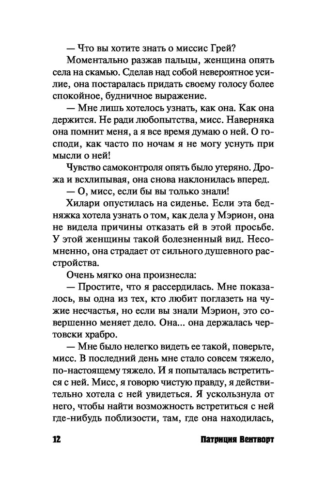 При всей моей любви к английскому детективу в стиле Агаты Кристи, эта книга мне не понравилась. Повторы, наивные переживания героини, миссис Сильвер почти не появляется. Другие книги Вентворт мне понравились . Звёзды за сюжет.