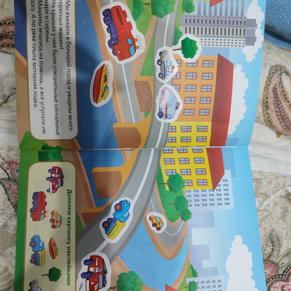 Яркая печать, интересный текст. Ребенок читает, как рассказ. Очень интересно наклеить машинки согласно сюжету, как будто сам сделал книжку