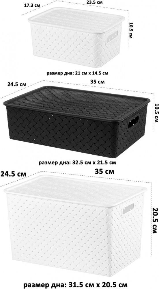 Отличные корзины по очень привлекательной цене. Крышки сидят не плотно, но мне они были не нужны.