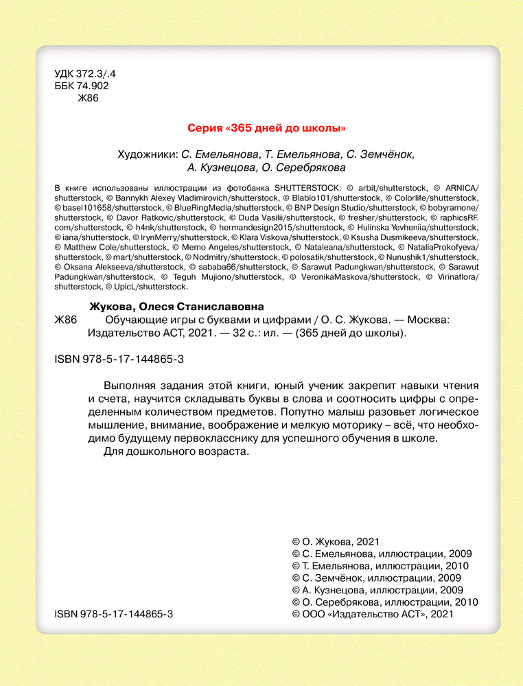 Серия: 365 дней до школы Выполняя задания этой книги, юный ученик закрепит навыки чтения и счета, научится складывать буквы в слова и соотносить цифры с определенным количеством предметов. Попутно малыш разовьет логическое мышление, внимание, воображение и мелкую моторику — всё, что необходимо будущему первокласснику для успешного обучения в школе. |