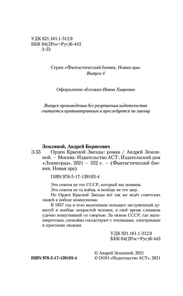 Серия: Фантастический боевик. Новая эра Это совсем не тот СССР, который мы помним.Это совсем не та война, и вообще не тот мир.Но Орден Красной Звезды всё так же ведёт советских людей к победе коммунизма.В 1957 год в тело мальчишки попадает заслуженный душегуб и вообще непростой человек, в своё время слишком удачно пошутивший со смертью. За окном СССР, где маги-энергетики, спокойно соседствуют с техниками, электриками и простыми людьми. |