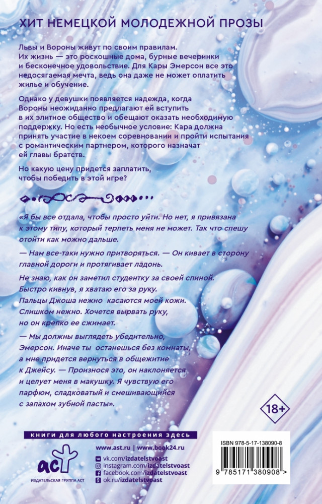 Серия: Клуб романтики Львы и Вороны живут как короли. Все, о чем может мечтать бедная девушка, находится у Львов и Воронов в пределах одного щелчка пальцев. Роскошные особняки и громкие вечеринки — правило, а не исключение. У Кары Эмерсон появляется шанс попасть в это закрытое общество, но цена велика. Кара должна принять участие в опасном соревновании и пройти испытания с партнером, которого ей назначат главы братства. Львы и Вороны живут по своим правилам. Их жизнь — это роскошные дома, бурные вечеринки и бесконечное удовольствие. |