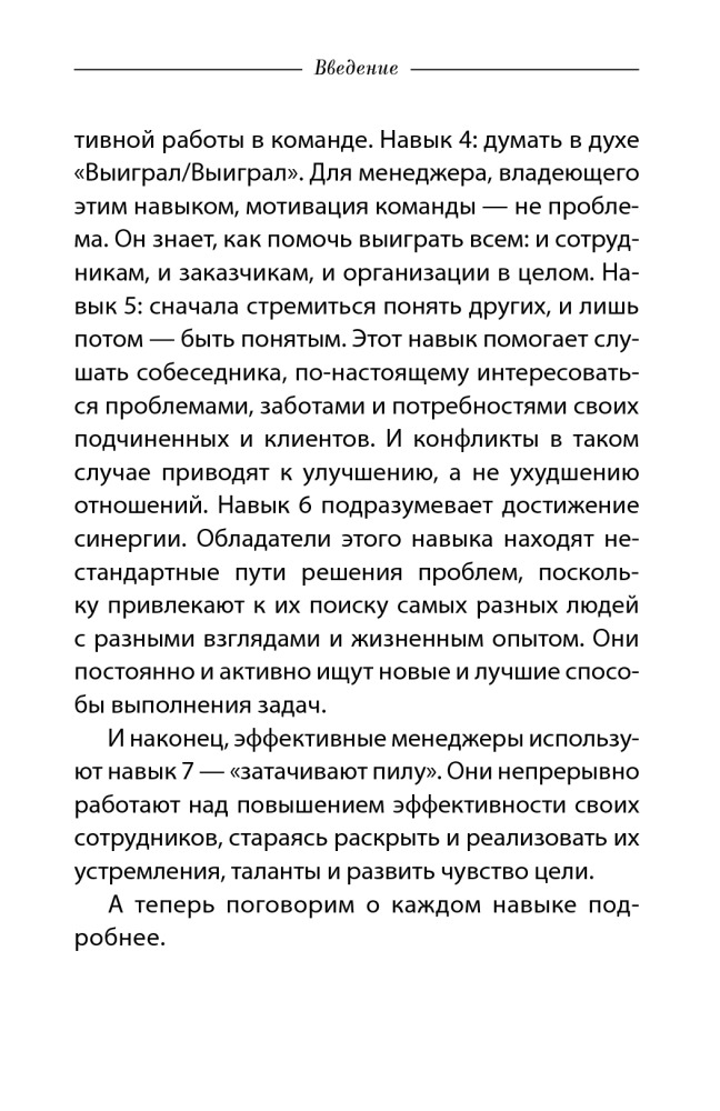 Книга - краткий конспект "Семи навыков высокоэффективных людей" с припиской для менеджеров. Для чего вообще писалась, непонятно, точнее понятно - чтобы заработать дополнительные деньги на уже известном названии. Зря деньги потратил.