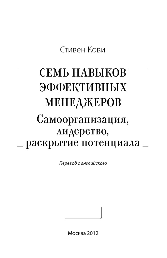 Я уже трети раз заказываю книги С. Кови, нравится манера написания и понятность. Человек все применял на своем опыте! Благодарю за знание, за щедрость!