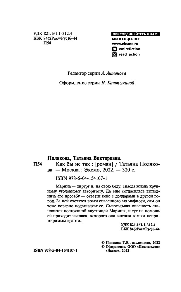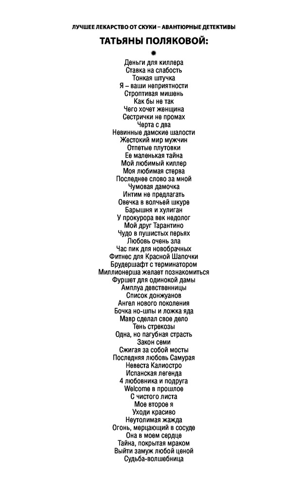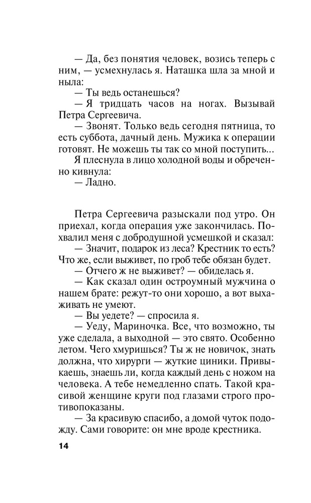 Серия: Авантюрный детектив. Романы Т. Поляковой. Новое оформление Марина — хирург и, на свою беду, спасла жизнь крупному уголовному авторитету. Да еще согласилась выполнить его просьбу — отвезти кейс с долларами в другой город. За ней охотятся враги спасенного ею мафиози, сам он тоже коварно подставляет ее. Смертельная опасность становится постоянной спутницей Марины, и тут на помощь ей приходит человек, которого она считала самым непримиримым врагом... |