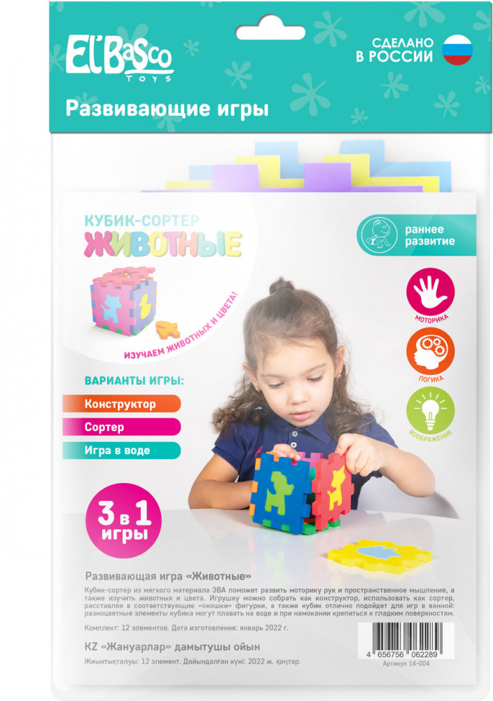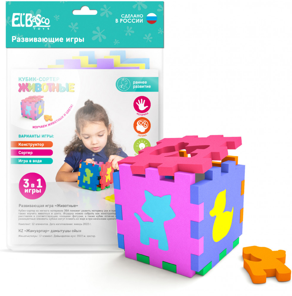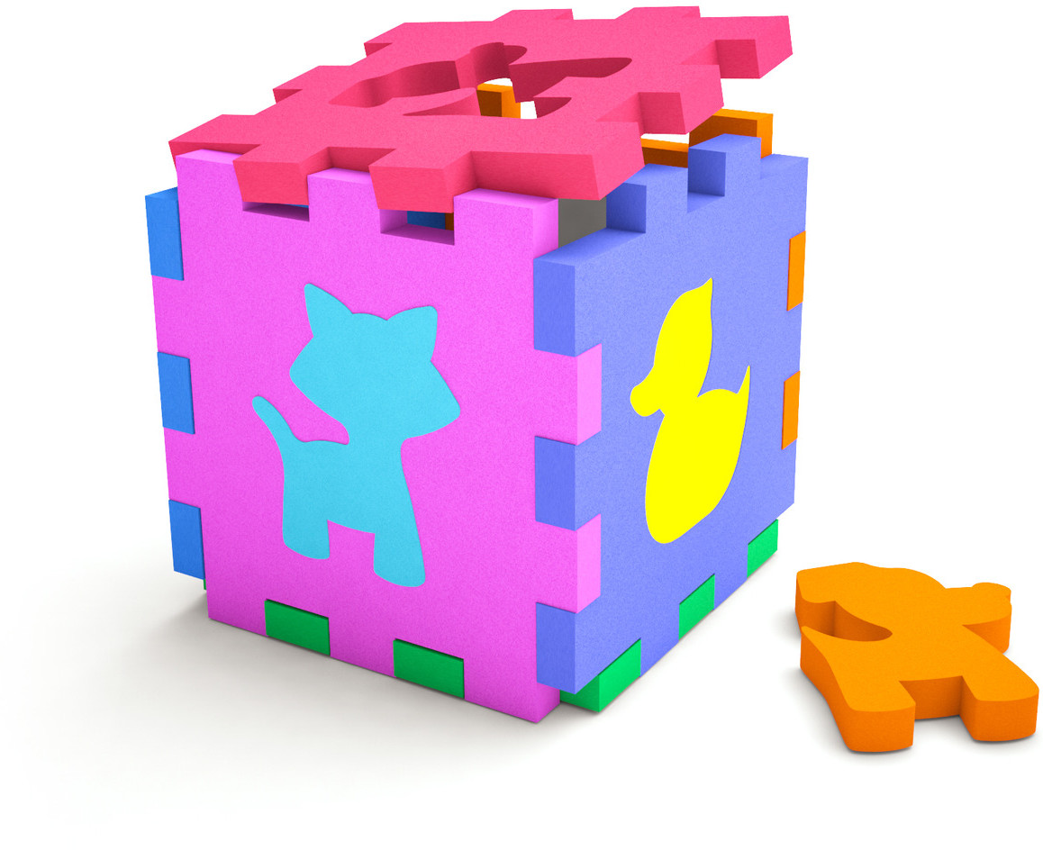 Мягкий кубик-сортер состоит из 6 граней с фигурными отверстиями, в которые малышу предлагается поместить подходящие по форме элементы. Кроме того, кубик можно собирать и разбирать целиком — детали легко соединяются между собой без дополнительных креплений и отлично держат форму. Толщина материала 8 мм. |