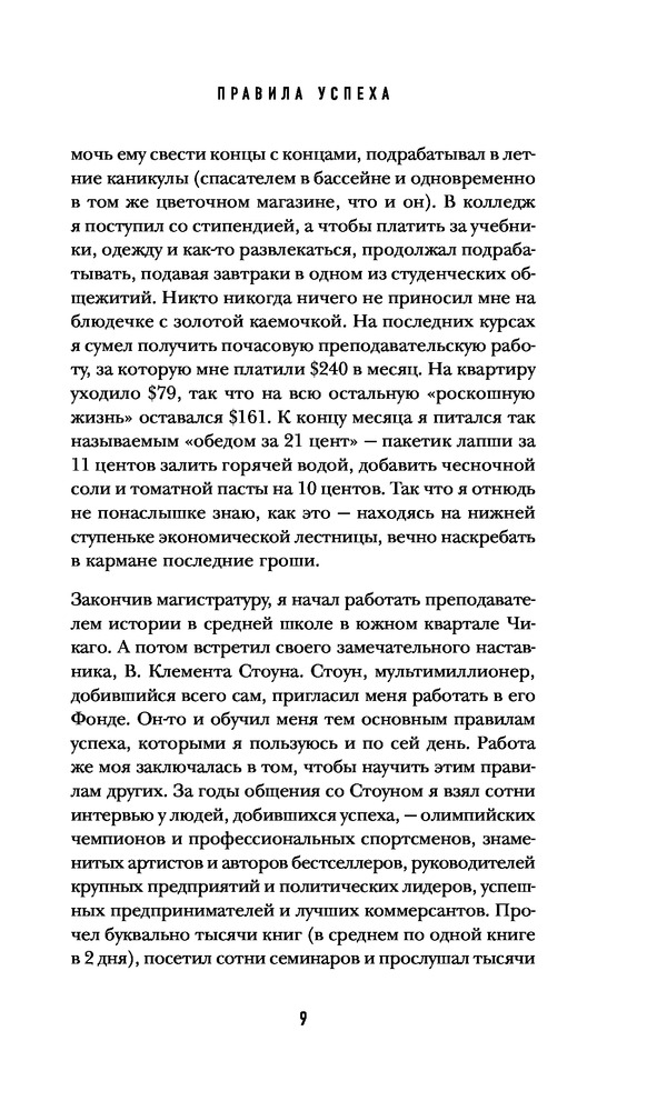 Серия: Психологический бестселлер Джек Кэнфилд — эксперт по достижению успеха, автор более 60 книг, разошедшихся по всему миру тиражами в 500 000 000 экземпляров, переведенных на 39 языков. Семь из написанных им бестселлеров лидировали в рейтинге «New York Times», имя Джека Кэнфилда занесено в Книгу рекордов Гиннесса. Ученик легендарного Наполеона Хилла является владельцем шикарного поместья в Калифорнии, регулярно участвует в известных телевизионных передачах — от «Ток-шоу Опры» до «Доброе утро, Америка!», получая за каждое выступление не менее 25 тыс. долларов. Ежегодный доход Кэнфилда превышает несколько миллионов долларов. |