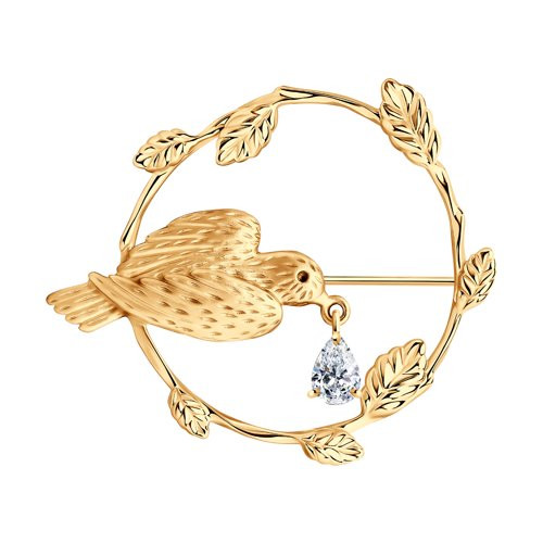 Птичка на броши из матового металла. Смотрится дешево, как бижутерия.