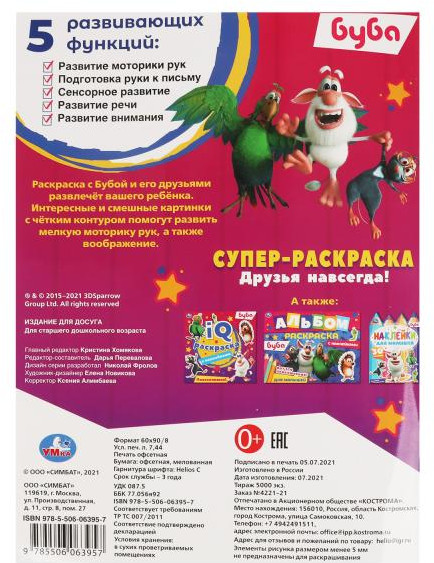 Серия: Супер-раскраска Супер-раскраска «Буба. Друзья навсегда!» станет прекрасным подарком для маленького поклонника мультсериала про забавного домового: |