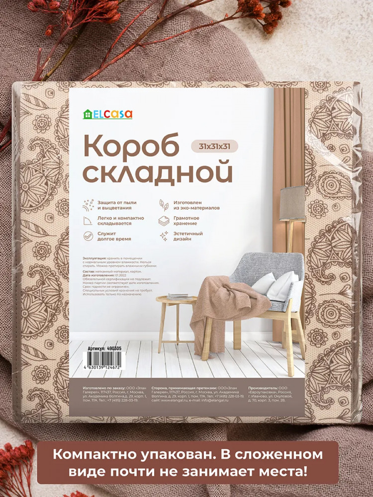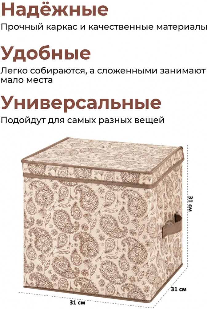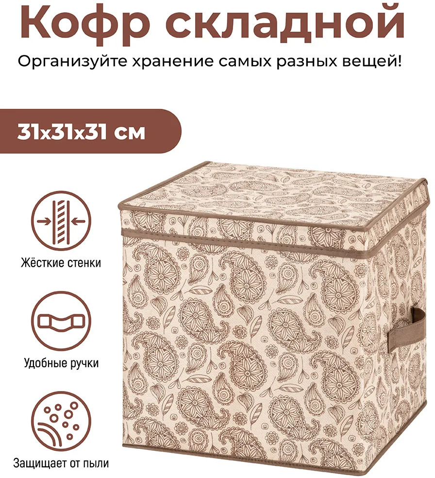 El Casa Короб для хранения складнойВ данный момент этот товар отсутствует в продаже. Возможно, у нас найдется аналогичный или похожий товар здесь. Серия: Пейсли Короб складной поможет организовать хранение в самых разных помещениях: в прихожей, гостиной, спальне, детской и любых других комнатах. Такие кофры эстетично выглядят. Их можно разместить не только в шкафу, но и на открытых полках. Помогут организовать систему хранения самых разных вещей в едином стиле, будь то игрушки, одежда, канцелярия, косметика, нижнее белье, носки, рукоделие или другие мелочи. Органайзер выполнен из нетканого материала и имеет плотные картонные вставки. Имеет ручку, чтобы коробку было удобно выдвигать как ящик. Такой контейнер станет удобным дополнением дома и поможет эффективно использовать каждый сантиметр пространства.  |