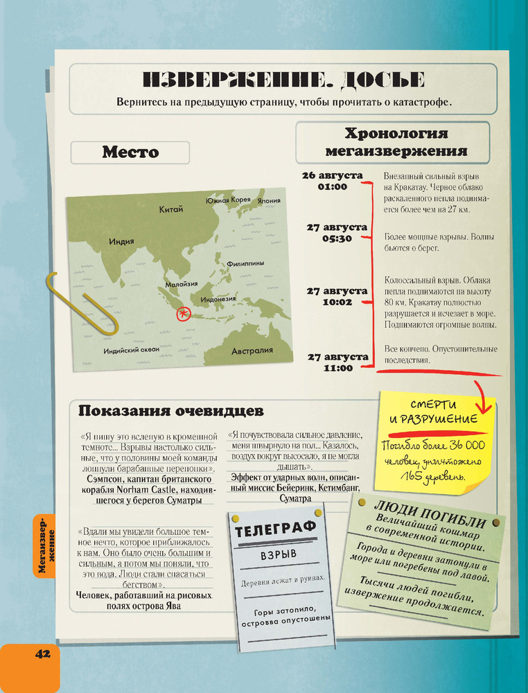 Реальные катастрофы. Что случилось на самом деле?В данный момент этот товар отсутствует в продаже. Возможно, у нас найдется аналогичный или похожий товар здесь. Серия: Энциклопедия секретных материалов Энциклопедия «Реальные катастрофы» расскажет о самых громких и масштабных катастрофах, которые случались на Земле на протяжении всей ее истории.Вас ждут природные катастрофы — от вымирания динозавров до ужасных извержений вулканов, торнадо и смертельных болезней — а также катастрофы, созданные руками человека, от крушения «Титаника» до разрушения целых городов.Вы узнаете, где, когда и почему произошла катастрофа, изучите все известные на сегодняшний день факты и главное прочитаете о том, что можно сделать, чтобы избежать подобных трагедий в будущем. Может быть, вы и сами захотите стать специалистами по расследованию катастроф?Для среднего школьного возраста.Почему происходят катастрофы и можно ли их предотвратить?От самых разрушительных извержений вулканов до крушения «Титаника» и взрывов на нефтяных платформах — узнайте, почему происходят катастрофы, как эксперты изучаютих и какие меры принимают, чтобы подобное не повторилось. |