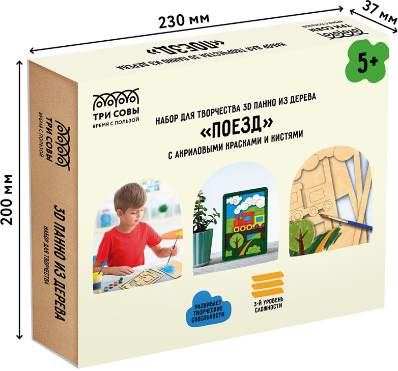 Набор для творчества 3D панно из дерева «Поезд» станет отличным подарком для совместного творчества детей и их родителей. Подойдет для начинающих юных художников.