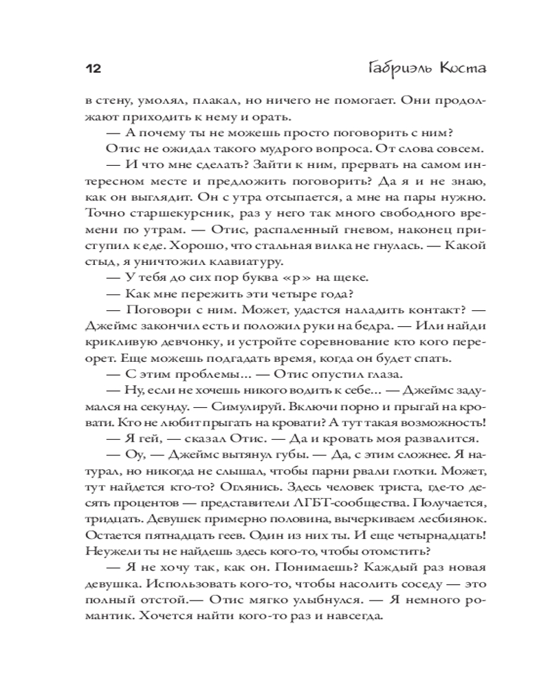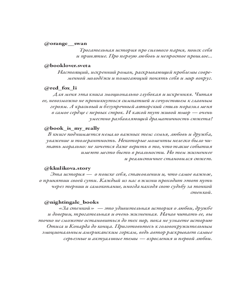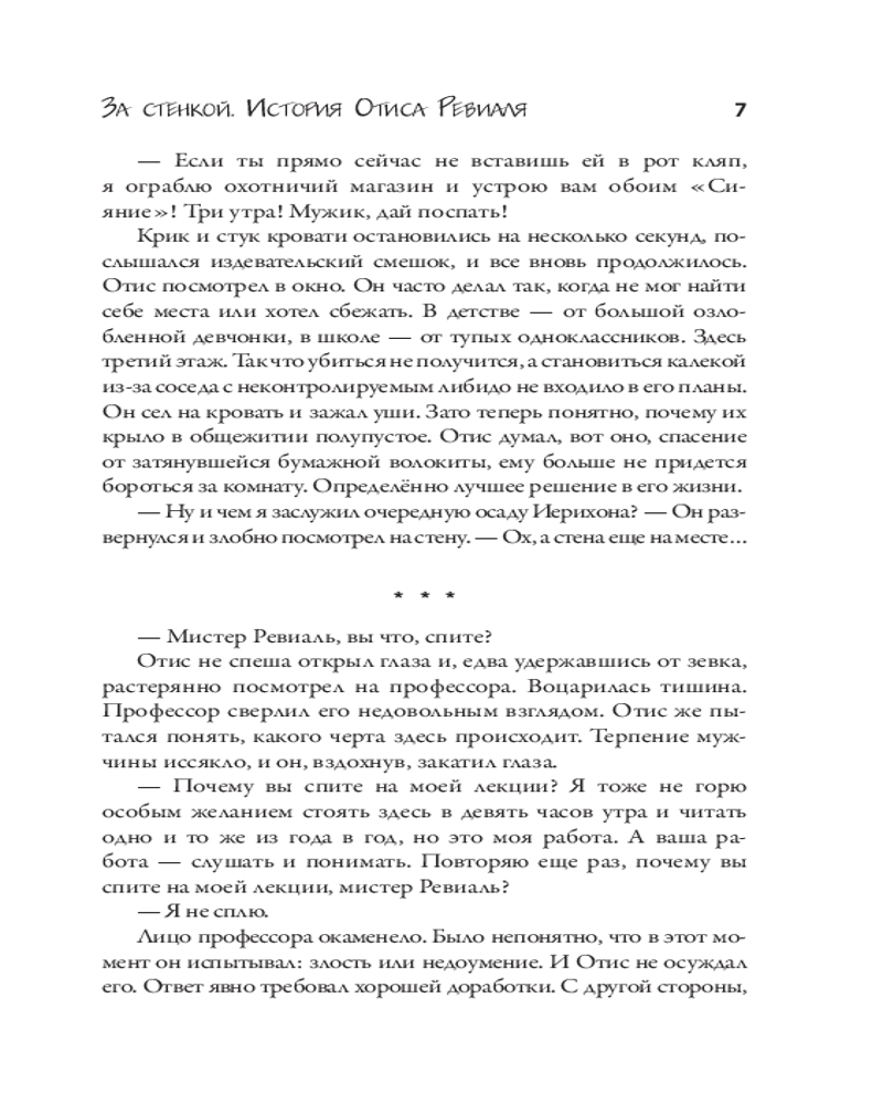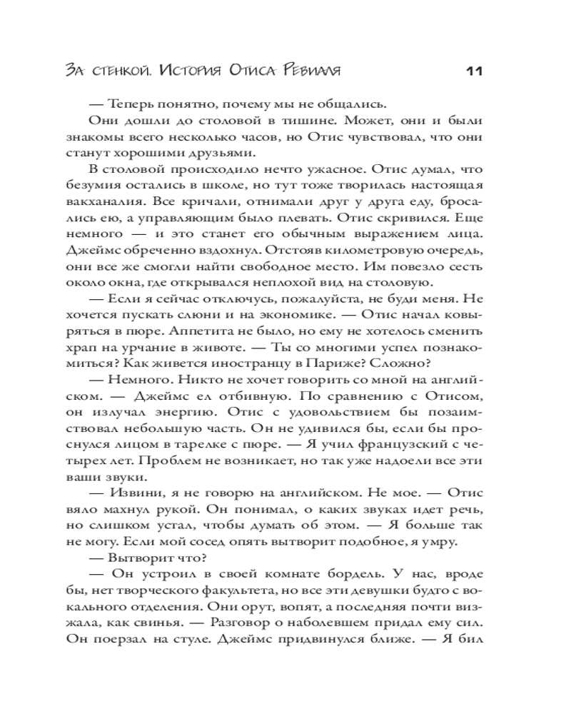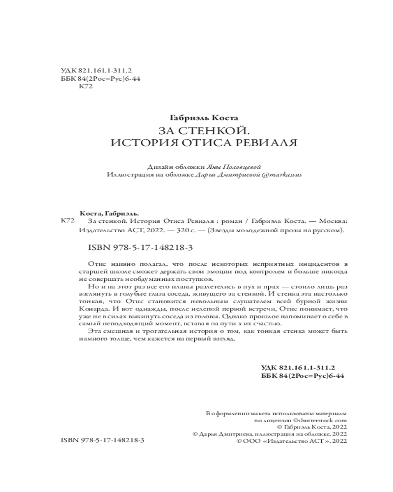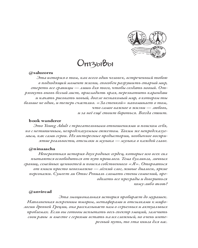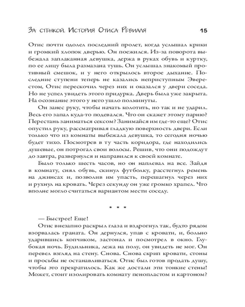 За стенкой. История Отиса РевиаляВ данный момент этот товар отсутствует в продаже. Возможно, у нас найдется аналогичный или похожий товар здесь. Серия: Звезды молодежной прозы на русском Отис наивно полагал, что после некоторых неприятных инцидентов в старшей школе сможет держать свои эмоции под контролем и больше никогда не совершать необдуманных поступков. Но и на этот раз все его планы разлетелись в пух и прах — стоило лишь раз взглянуть в голубые глаза соседа, живущего за стенкой. И стенка эта настолько тонкая, что Отис становится невольным слушателем всей бурной жизни Конарда. И вот однажды, после нелепой первой встречи, Отис понимает, что уже не в силах выкинуть соседа из головы. Однако прошлое напоминает о себе в самый неподходящий момент, вставая на пути к их счастью. Эта смешная и трогательная история о том, как тонкая стенка может быть намного толще, чем кажется на первый взгляд. |