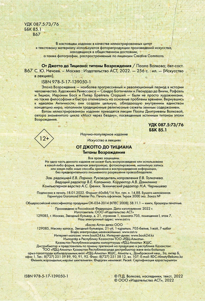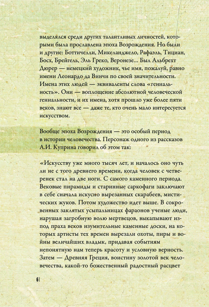 От Джотто до Тициана. Титаны ВозражденияВ данный момент этот товар отсутствует в продаже. Возможно, у нас найдется аналогичный или похожий товар здесь. Серия: Искусство в лекциях Имя Паолы Волковой знает каждый, кто хотя бы немного связан с искусством. Её глубокие познания помогли многим разобраться в том, как понимать и ценить искусство. Джотто, Босх, Да Винчи и многие другие имена, известные многим людям по всему миру, но не все знают кем были эти люди в действительности и что они брали в основу своего творчества. В основу книги легли лекции Паолы Дмитриевны о самом революционном и прогрессивном периоде в истории искусства. Понятный и простой текст позволит понять идеи картин даже тем, кто ранее был далёк от искусства. Издание сопровождается яркими и красивыми иллюстрациями на бумаге, в полной мере способной отобразить красоту шедевров мирового искусства. |