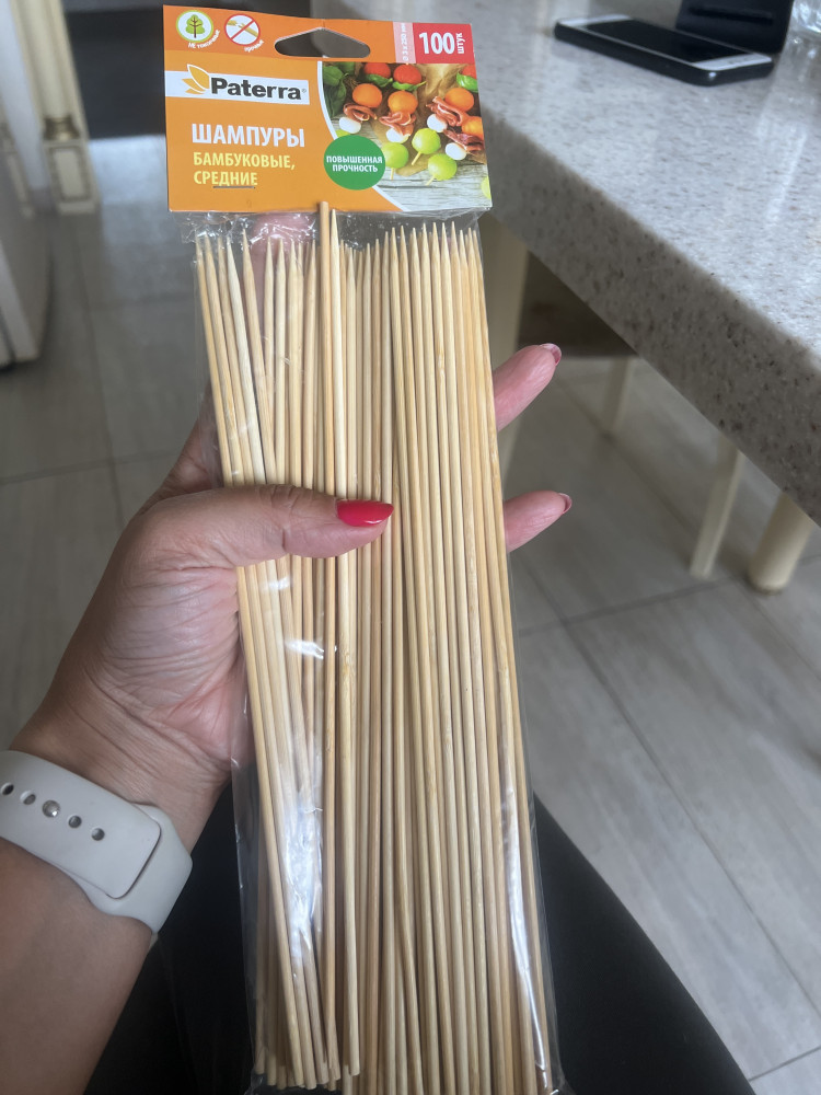 Paterra Шампуры бамбуковые-25% +19 длинные острые хорошая обработка одинаковые