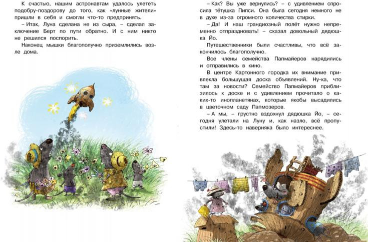 Семейство Папмайеров — дядюшка Йо, тётушка Пипси, мышата Берт и Йоги — тоже обитает в Картонном городке. Эта дружная семья очень любит путешествия и приключения, постоянно что-то изобретает и придумывает себе всякие увлекательные занятия — словом, никогда не скучает. Чего только стоят их полёты на Луну и поиски подводных сокровищ! А однажды в доме Папмайеров случился настоящий переполох... |