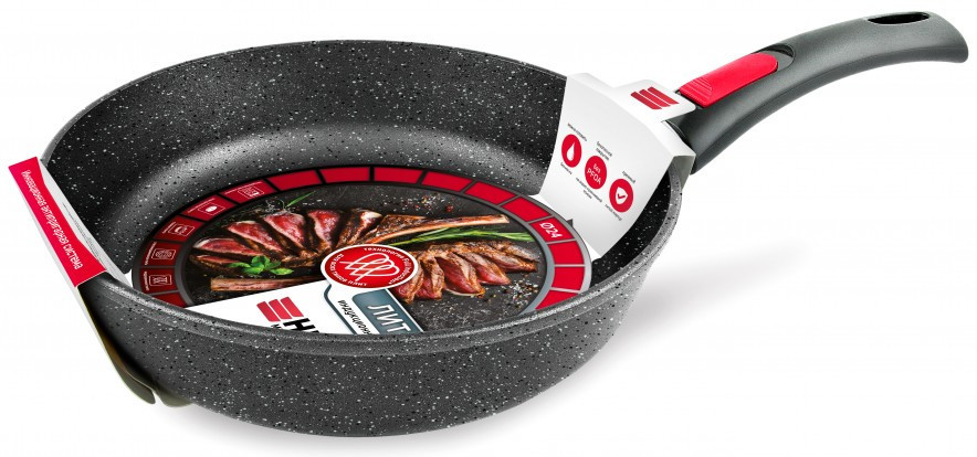 Многослойное антипригарное покрытие c эффектом натурального камня позволяет готовить с минимальным количеством масла и сохранять натуральный вкус продуктов. Антипригарное покрытие на водно-кремниевой основе безопасно, не содержит PFOA (перфтороктановой кислоты). Эргономичная ручка из бакелита не нагревается в процессе приготовления, что обеспечивает максимальный комфорт. Индивидуальный номер на дне изделия — гарантия качества от производителя.