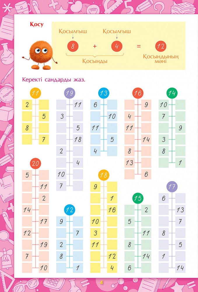 Бұл оқу құралы тренажер ретінде ұсынылады, оқушының 100 көлеміндегі сандар-ды жылдам қосу мен азайтуға үйретеді, есептеу дағдысын меңгеруге көмектеседі. |