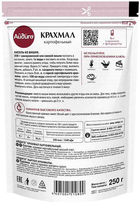 Крахмал используется при приготовлении множества блюд — без него немыслимы суфле, кисели, пудинги, а также много соусы и кремы, придает блюдам характерную консистенцию.