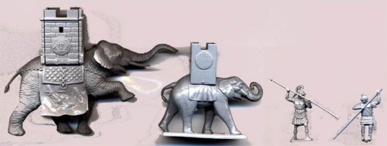 В наборе моделей представлены индийский слон из армий эллинистического Востока и, ныне вымерший, североафриканский лесной слон армий Египта и Карфагена. Экипаж каждого слона составляет: погонщик и воины, вооруженные копьями или лучники.