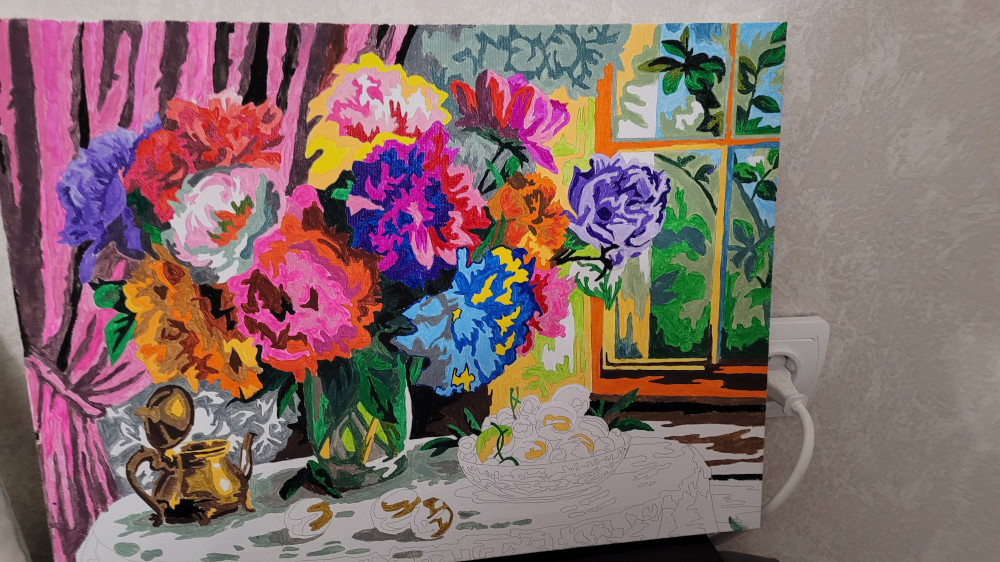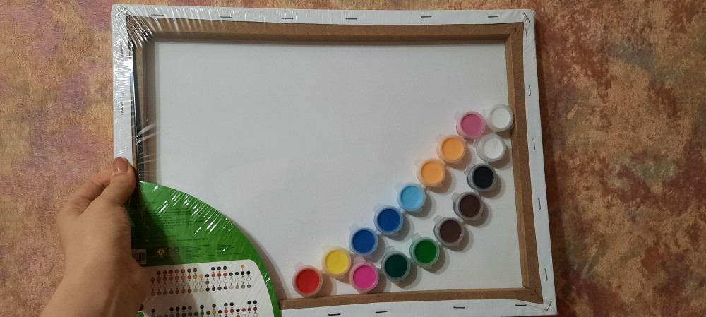 Да, картина, с подрамником из фанеродерева, на холсте..и просто контур, номеров нет...краски надо самим смешивать . Получается вы сами художник настоящий - смешиваете краски как хотите, такой же как у вас картина ни у кого не получится из-за разных получаемых красок! 😉🙂