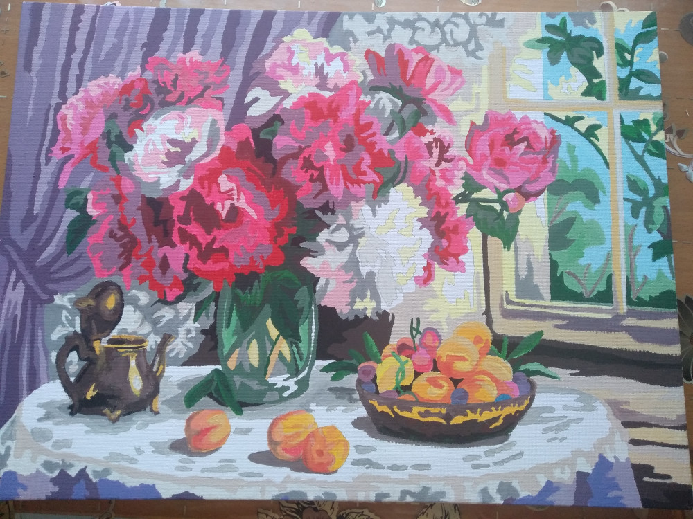 Закончила сегодня, фото итоговое прикрепляю. Картинка очень понравилась! Особенно тем,что нет номеров , соответственно цифры не могут просвечивать. Краски все свежие , когда густели,капала каплю воды. У неоноворозовой ооооочееень плохая пигментация, наносится разводами. Хотелось бы, конечно, узнать,у кого из производителей нет такого, то есть краски с одного слоя , ну,или хотя бы с двух перекрывают. А так....довольна! Картинка или для взрослых или усидчивых детей постарше.