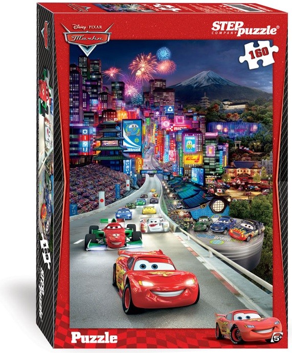 В коробке 160 пазлов, из которых ребенок сможет собрать картинку из мультфильма "Тачки".