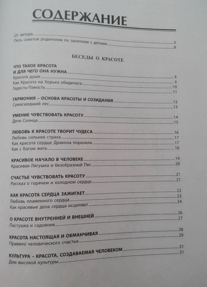 Книга большая, без картинок с большим количеством поучительных сказок и рассказов. Шрифт большой, сказки легко читаются и простые для понимания. К каждой сказки имеются наводящие вопросы для деток и объяснения тех или иных чувств, качеств и тд. Книга очень хорошая для воспитания детей, прививанию положительных качеств.