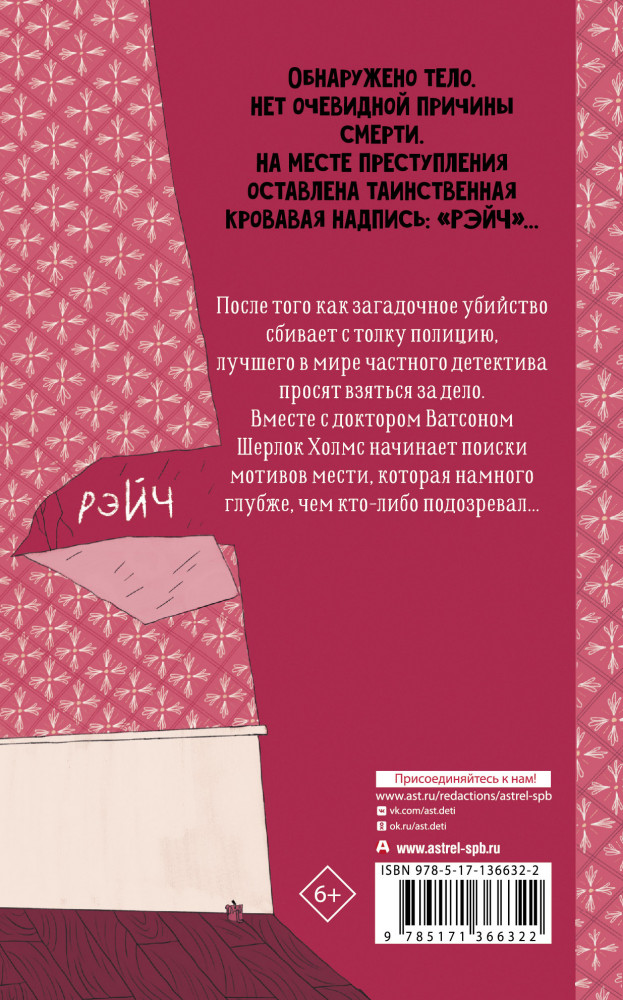 Шерлок Холмс. Этюд в багровых тонахВ данный момент этот товар отсутствует в продаже. Возможно, у нас найдется аналогичный или похожий товар здесь. Серия: Детская мировая классика Обнаружено тело. Нет очевидной причины смерти. На месте преступления оставлена таинственная кровавая надпись: «РЭЙЧ»... После того как загадочное убийство сбивает с толку полицию, лучшего в мире частного детектива просят взяться за дело. Вместе с доктором Ватсоном Шерлок Холмс начинает поиски мотивов мести, которая намного глубже, чем кто-либо подозревал... |