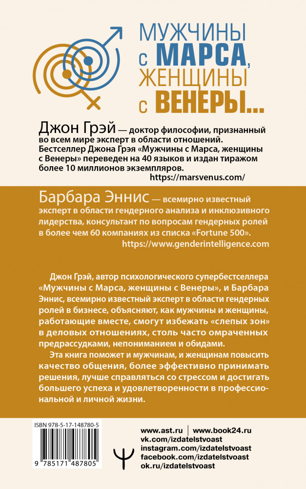В данный момент этот товар отсутствует в продаже. Возможно, у нас найдется аналогичный или похожий товар здесь. Серия: Уроки счастливых отношений Продолжение знаменитого бестселлера Джона Грэя «Мужчины с Марса, женщины с Венеры»! Теперь Марс и Венера будут учиться работать вместе в команде, преодолевать трудности в общении, добиваться неизменно превосходных результатов в работе и максимальной гармонии в личной жизни.