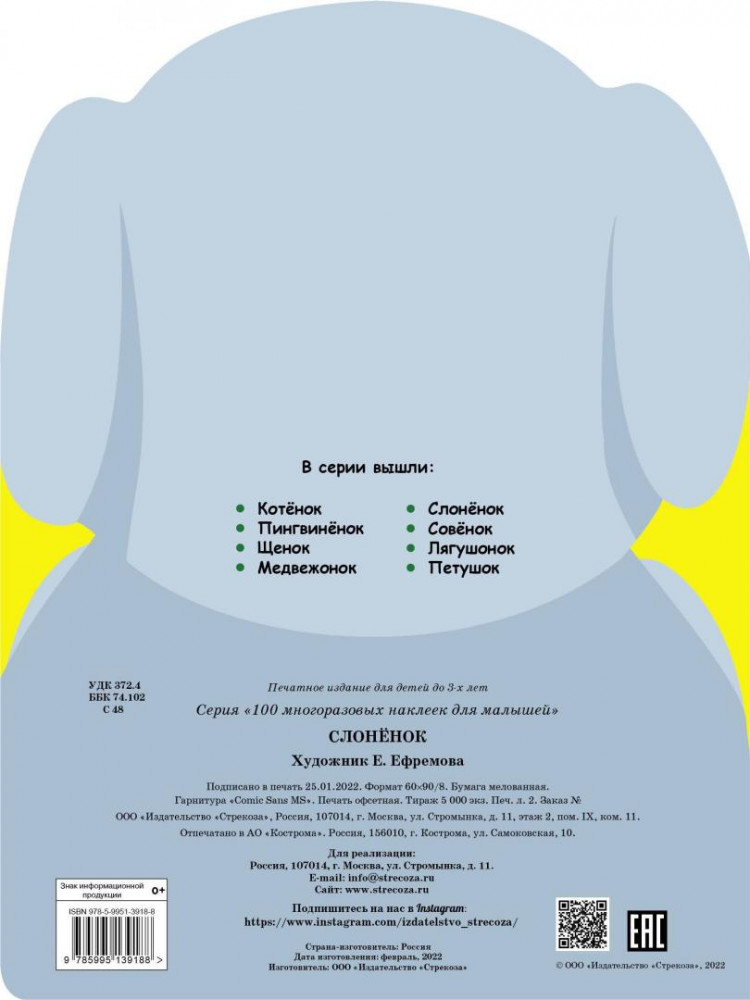 Серия: 100 многоразовых наклеек для малышей Вашему вниманию предлагается раскраска, включающая в себя задания с наклейками для детей до 3-х лет. |