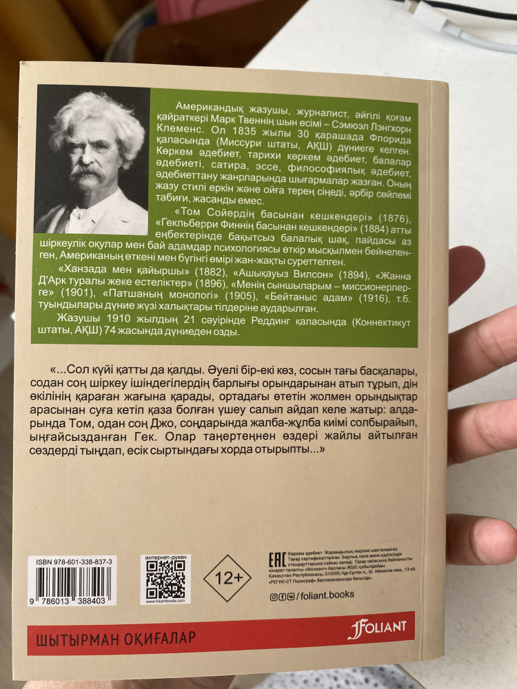 Том Сойердің басынан кешкендеріВ данный момент этот товар отсутствует в продаже. Возможно, у нас найдется аналогичный или похожий товар здесь. Бұл классикалық туындыда Том Сойердің басынан кешкен қызықты оқиғалары суреттеледі. Оқиға тілі бай, түрлі тартыстарға толы. Кейіпкерлер және олардың өмірі, дүниетанымы арқылы сол кездегі, яғни ХVШ ғасырдағы АҚШ-тағы шағын қалашық тұрғындарының күнделікті жұмыс тіршілігі, қарапайым адамдардың, діни қызметкерлердің психологиясы, болмысы, түсінігі суреттеледі. Кейбір тұстардағы суреттер мен оқиғалар қазақ ауылындағы өмірді көз алдыңа әкелгендей болады. |