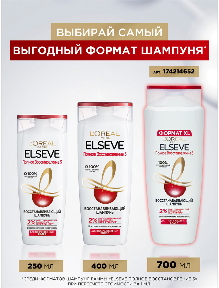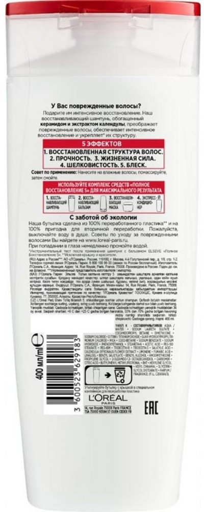 Elseve Шампунь для волос «Полное Восстановление 5» для поврежденных волос