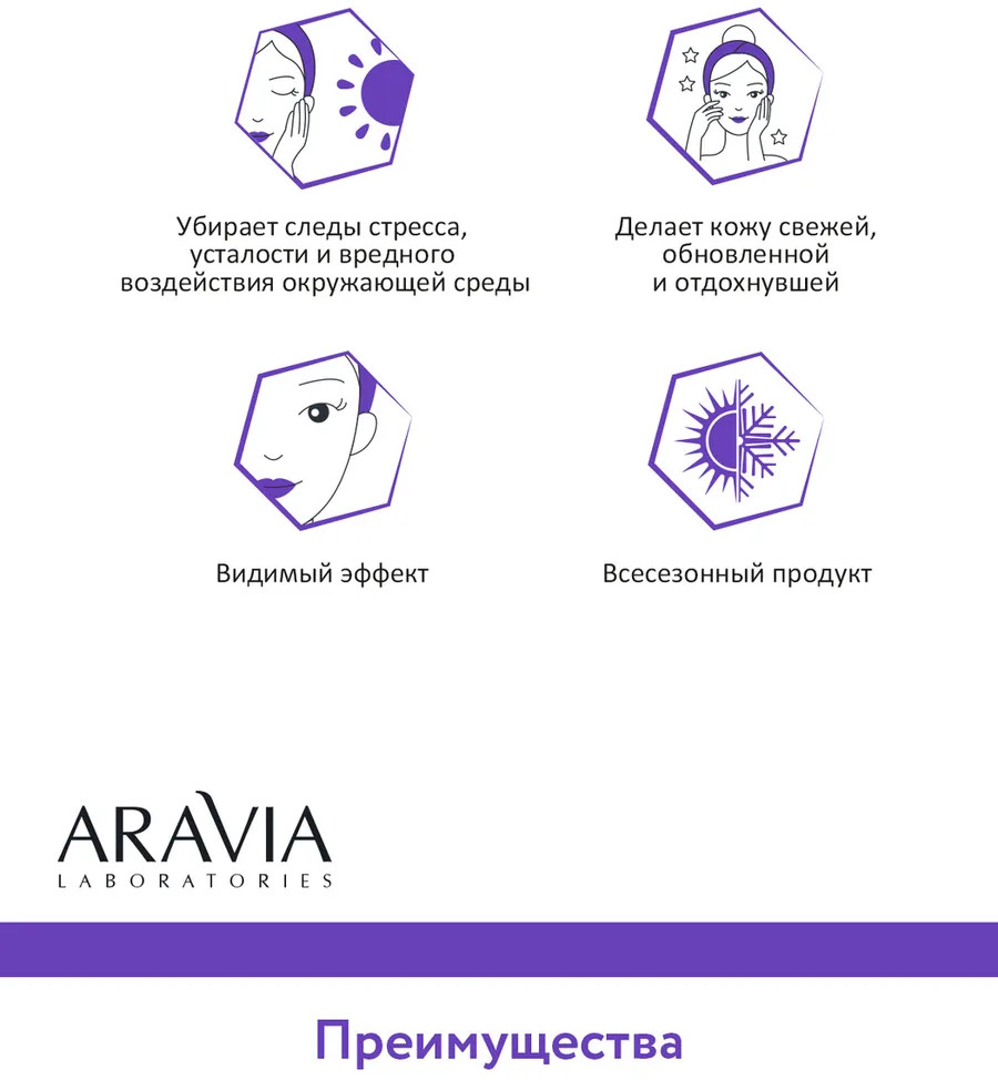 Маска предназначена для интенсивного восстановления кожи лица, шеи и декольте во время сна. Очищает кожу от токсинов и улучшает ее защитные функции. Активно увлажняет и смягчает. Насыщает глубокие слои эпидермиса витаминами и жирными кислотами. Омолаживает, повышает синтез коллагена и стимулирует процесс образования эпидермальной гиалуроновой кислоты. Разглаживает морщинки, укрепляет и оживляет утомленную и дряблую кожу, делает ее более упругой и эластичной. Улучшает цвет лица, делает кожу сияющей, свежей и отдохнувшей утром. Рекомендована для сухой и очень сухой кожи. |