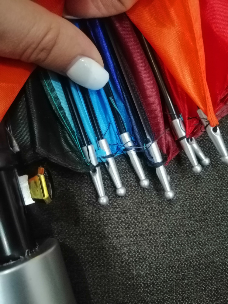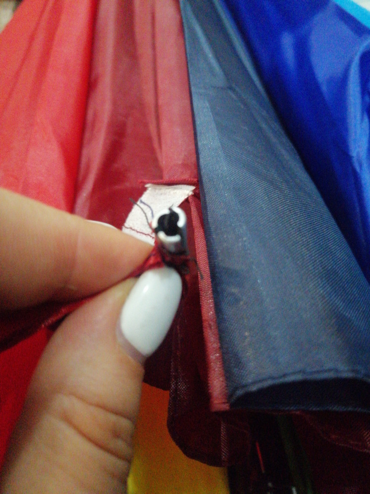 Красивый, большой зонт - на этом плюсы этого зонта заканчиваются. Качество никакое. Ткань - какая-то дешевая подкладочная. Решила все же взять, красивый, яркий.. Один раз воспользовалась - результат на фото, все пластмассовые наконечники держащие ткань лопнули. это еще не было ветра! Просто моросил дождик. А при ветре ткань унесет! не рекомендую. Очень расстроена! Слишком дорого для одноразовой вещи.