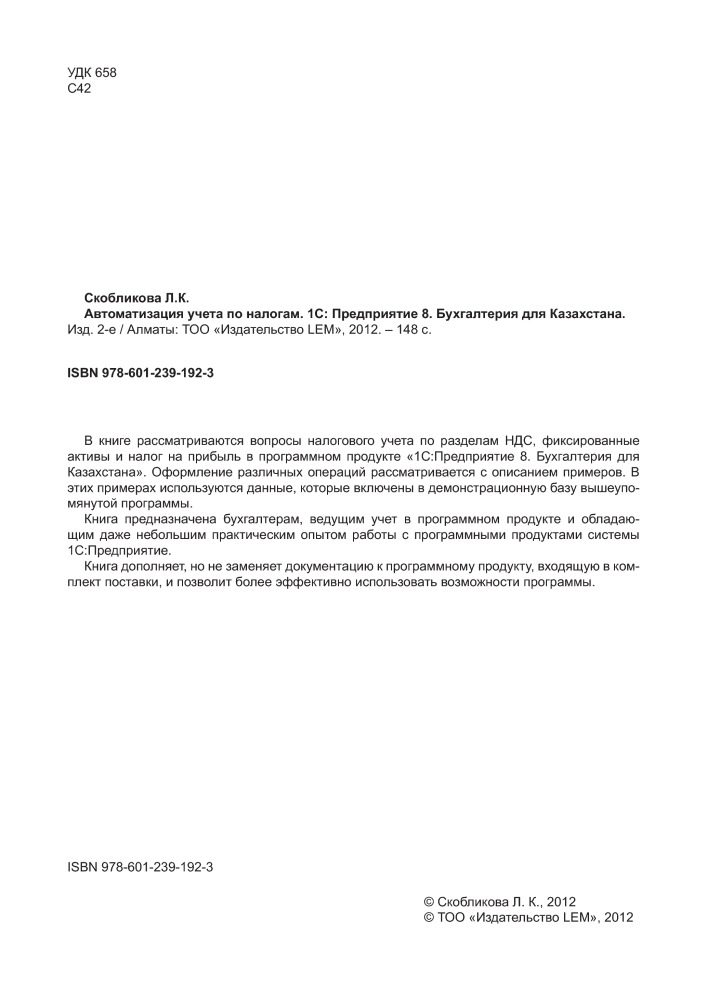 💳 Оплатить за товар можно при получении 🇰🇿 Есть бесплатная доставка по Казахстану 🎁 Копите бонусы с каждой покупки В книге рассматриваются вопросы налогового учета по разделам НДС, фиксированные активы и налог на прибыль в программном продукте «1С:Предприятие 8. Бухгалтерия для Казахстана». Оформление различных операций рассматривается с описанием примеров. В этих примерах используются данные, которые включены в демонстрационную базу вышеупомянутой программы. |
