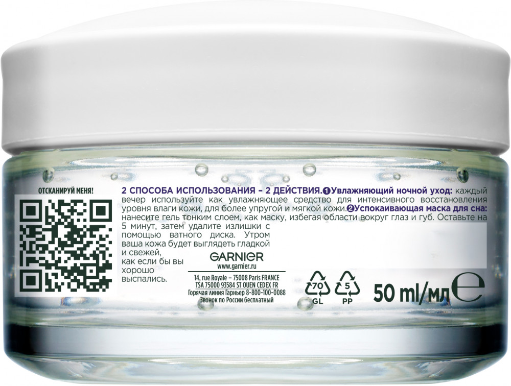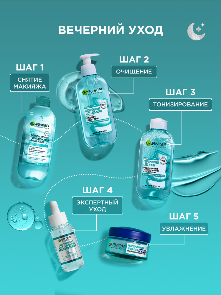 Garnier Гель увлажняющий для лица «Гиалуроновый Алоэ-гель» ночной-32%