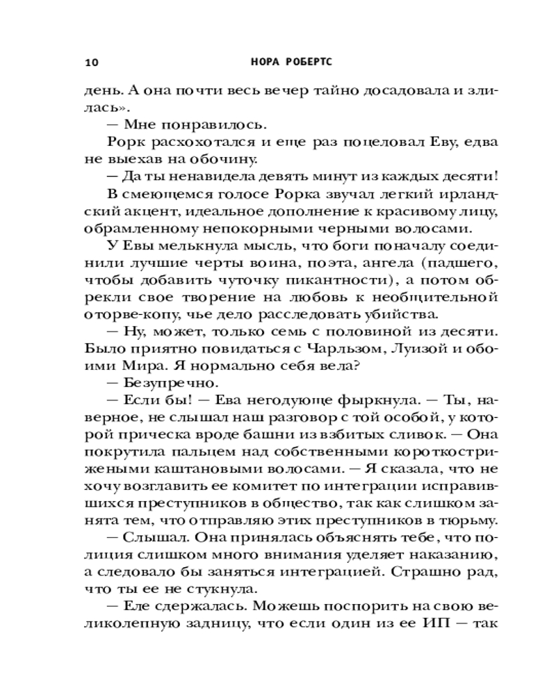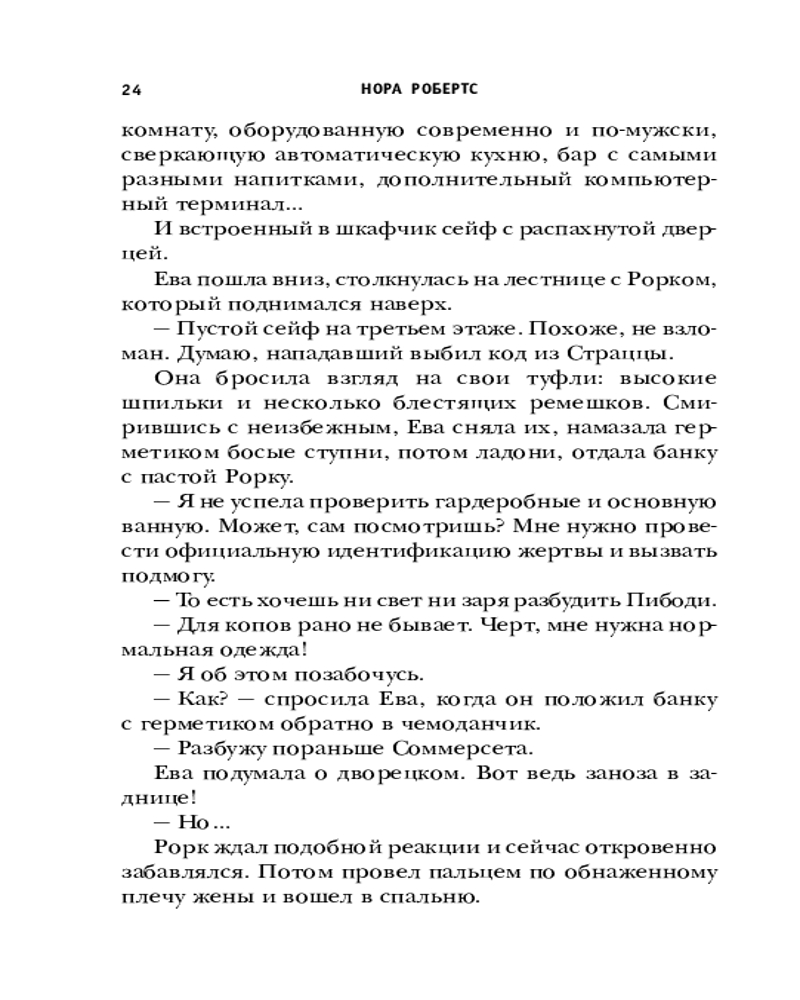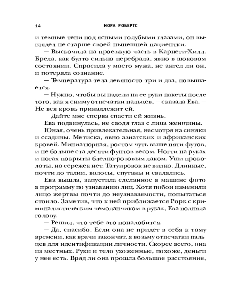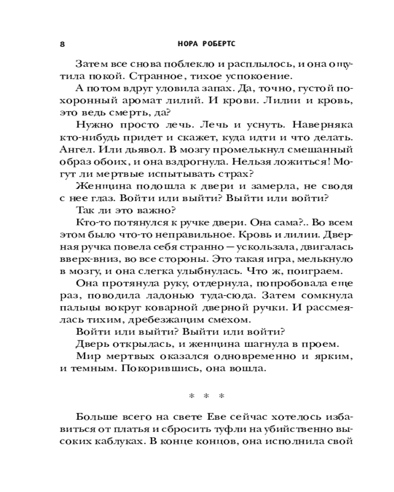 Нора Робертс (Nora Roberts, настоящее имя Элеанор Мари Робертсон Офем-Брайнк Уайлдер, пишет также под псевдонимами Джей Ди Робб, Сара Хардести и Джилл Марч) — известная американская писательница, автор современных любовных и детективных романов.
