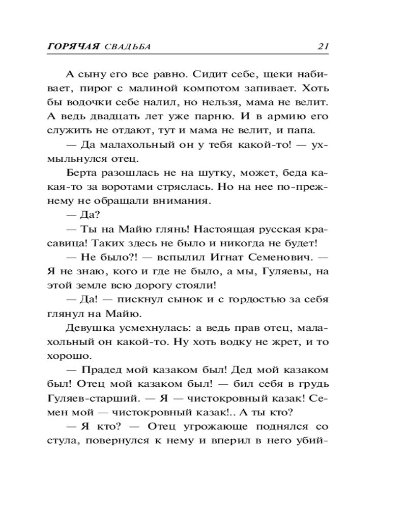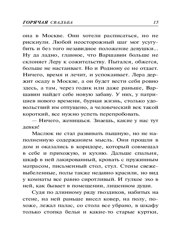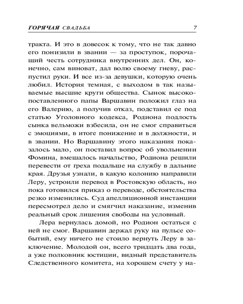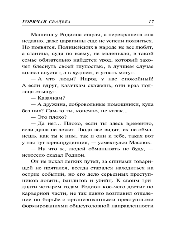 💳 Оплатить за товар можно при получении 🇰🇿 Есть бесплатная доставка по Казахстану 🎁 Копите бонусы с каждой покупки Серия: Колычев. Роковой соблазн Майора полиции Родиона Фомина понизили в звании и перевели на должность участкового в одну из донских станиц. Все потому, что его невеста отвергла ухаживания начальника Родиона, влиятельного полковника юстиции. На новом месте история повторилась. На этот раз в самого Фомина влюбилась дочь местного воротилы. Но полицейский не поддался соблазну, и девушка, по настоянию отца, согласилась выйти за другого... Вся округа в предвкушении грандиозного праздника. И только участковый Фомин догадывается, во что может превратиться свадьба дочери бывшего преступного авторитета, в свое время жестоко нарушившего воровской закон.... |