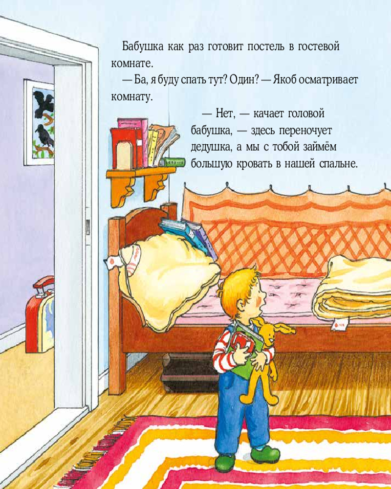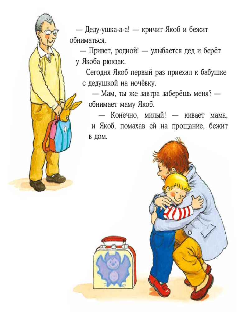 Якоб ночует у бабушки с дедушкойВ данный момент этот товар отсутствует в продаже. Возможно, у нас найдется аналогичный или похожий товар здесь. Серия: Якоб — лучший друг Конни Малышам очень важно знать, что всё идёт по плану, а родители и другие близкие люди готовы позаботиться о них. Ночёвка у бабушки с дедушкой может стать отличным приключением, если подготовиться к ней заранее. Например, так, как это сделала мама Якоба: дала ему с собой любимую игрушку, привычную зубную щётку и предупредила, когда вернётся за ним. А Якоб ещё дома придумал, что будет делать у бабушки с дедушкой. |