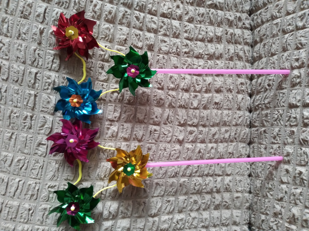 Весёлая игрушка. Купила две. Дети с удовольствием бегают с ними на улице, радуясь и наслаждаясь тем, как под действием ветра крутятся мерцая лепестки цветков.