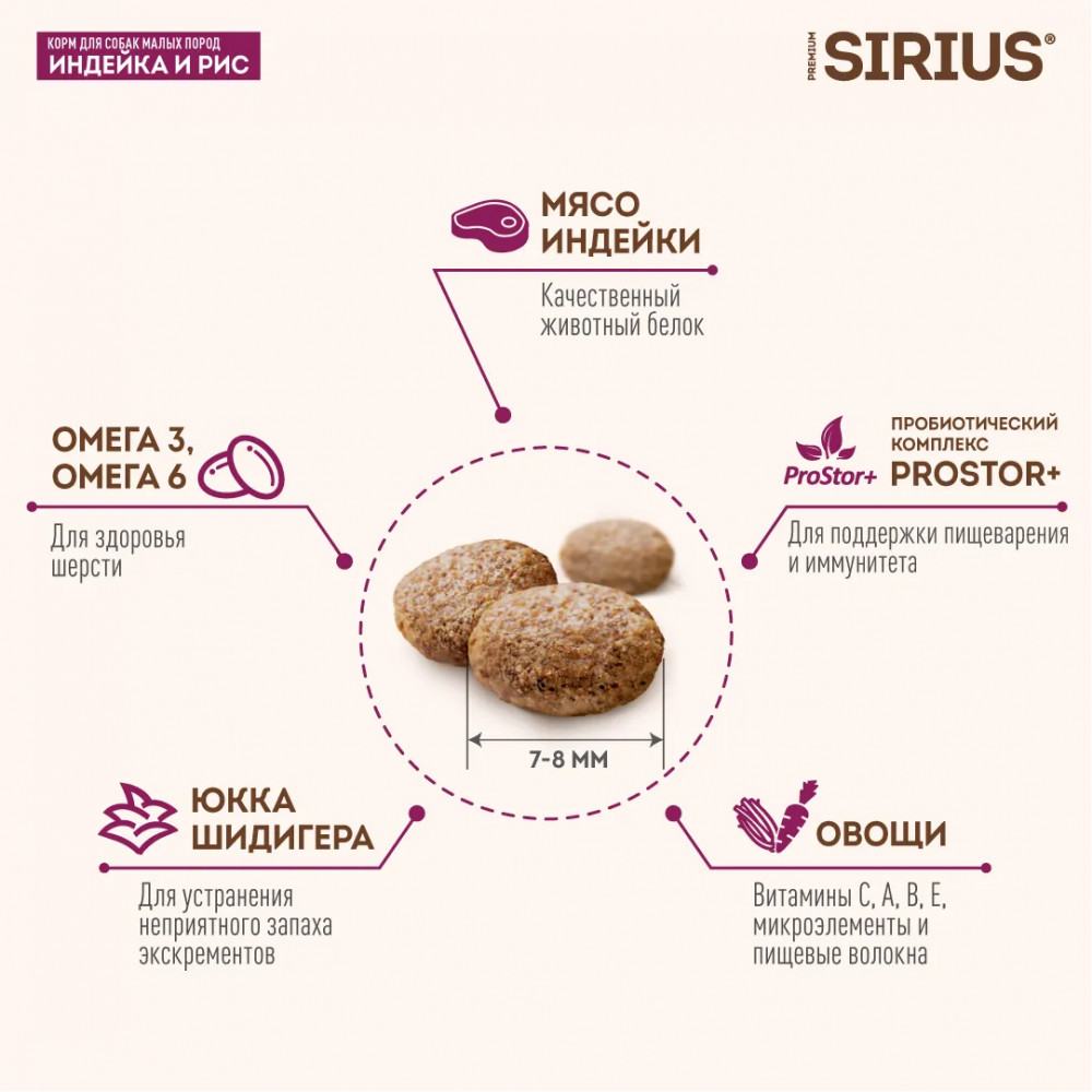 Sirius Корм для собак малых пород «Индейка и рис»