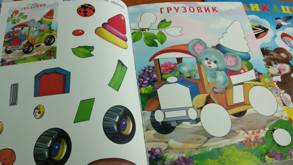Заказала сразу около 10 книжечек аппликаций, и именно с этой книжечки начали. Очень понравилось сыну приклеивать недостающие детальки. Всем советую.